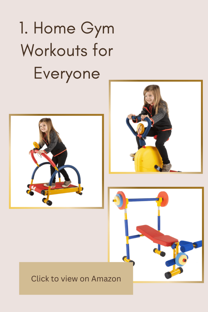 We love having our kids join us in the home gym, and with the Amazon kids’ weight set and treadmill, they can feel like part of the workout crew! While we lift weights or hit the treadmill, our little ones can “work out” alongside us in a way that’s safe and fun. This makes exercise feel like playtime, and they love being part of the action! The treadmill has a monitor that tracks distance and time, but the kids actually have to walk or run to make the pad move. The weight bench can be used for all ages. The foot weights move up and down and the bar disconnects from the bench to use independently or while laying down.