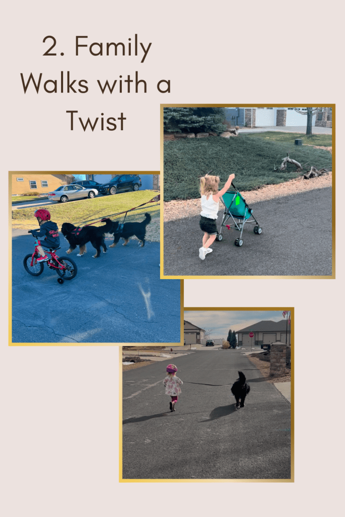 Taking regular family walks is a simple but effective way to stay active together. Our daughter loves pushing her baby doll in a stroller, while our son enjoys riding his bike alongside us. Not only do we get moving, but it also becomes a great time for conversation and connection. Fresh air, a little exercise, and quality family time—it’s a win-win! My dogs love it too!